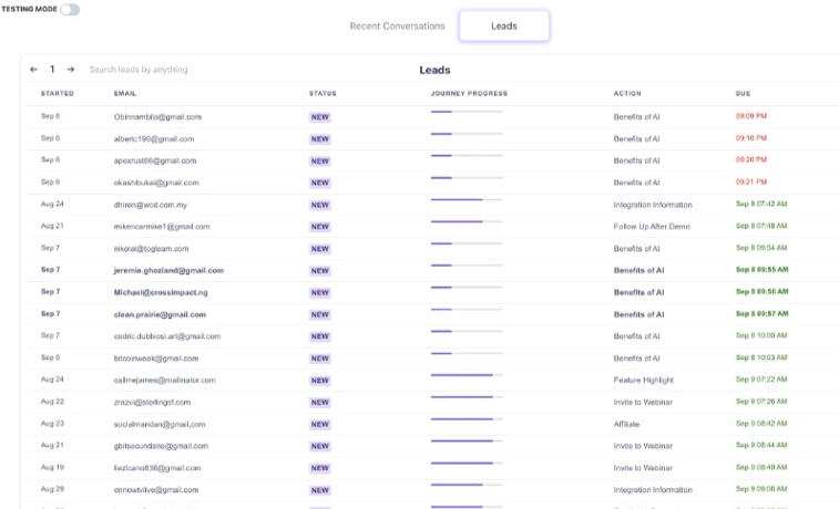 Drag and drop to add the questions you want to ask along with conditional logic to have the conversation flow exactly how you want. Your AI will use these as reference while keeping the customer in charge of the conversation.